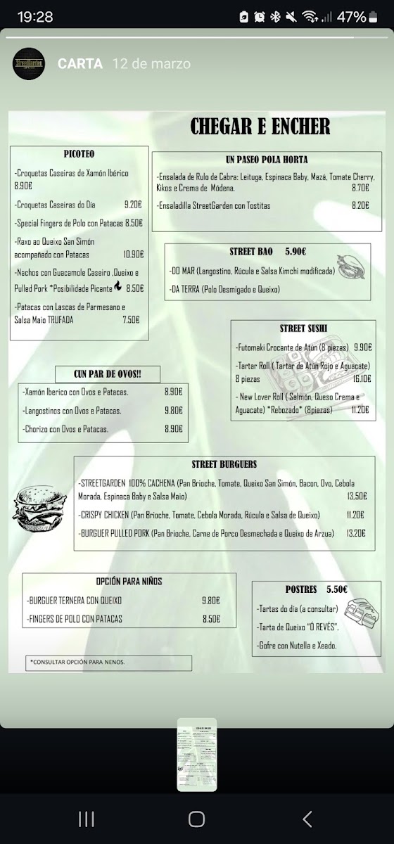 Nestled in the scenic Tr.ª da Peregrina in Bertamiráns, StreetGarden offers a delightful culinary experience that beckons food lovers with its innovative and diverse menu. This unique restaurant is celebrated for its welcoming ambiance and attentive service, creating the perfect setting for special occasions or casual dining alike.
